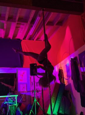 Bangor Pulse is a local festival run by volunteers to encourage more people to celebrate the diversity of skills and opportunities in Bangor City.  It was truly an honor to be asked to host The 2019 Bangor Pulse at our studio. Not only did this grant an opportunity  for our own students and Instructors to perform, but we were also able to watch the amazing Shimmilicious belly dancing ladies sparkle as they glided over the dance floor, and of course our very own Kayleigh AKA KJ performed her hula hooping routine which was extremely creative and showed incredible skill.  The students from our studio showed a huge diversity in their performances, Ben became a fearsome warrior, Nicky become a dainty, elegant hoop queen, Sarah showed a softer side to her performance, and Jade and Alessandra blew us away with their sexy dancing. The evening was a huge success and we look forward to a bigger and even better 2020 Bangor Pulse.